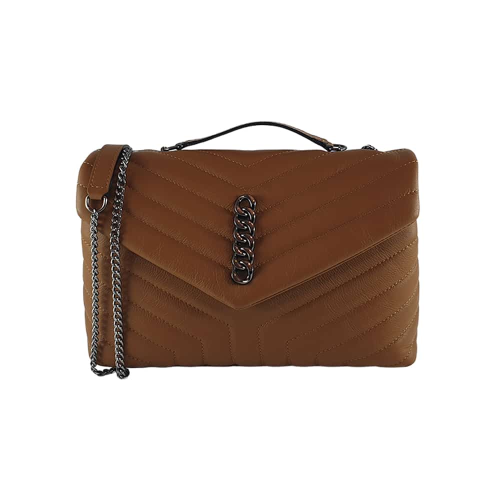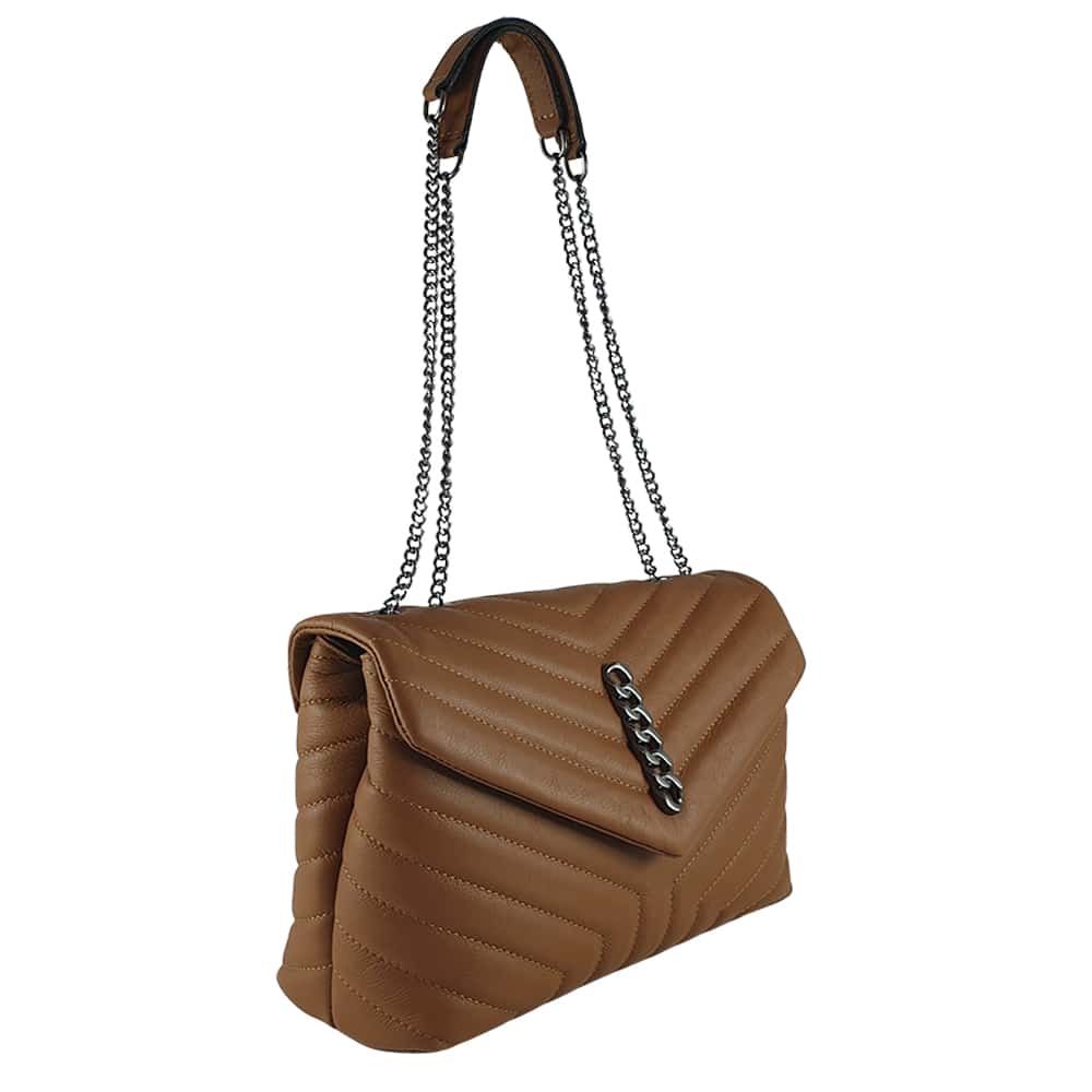 Realizata din piele naturala, este o poșetă de dimensiuni medii cu aspect practic si modern